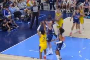 GIF-布朗尼变向转身后仰连招压哨命中