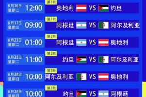 第3轮,约旦vs阿根廷,6月28日星期日10:00,达拉斯