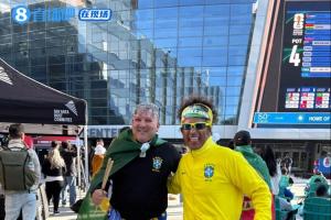 尽管冬日海风带来阵阵寒意,但一股提前降临的世界杯热浪迅速击碎了清晨的冷意。在布满圣诞装饰的球馆外,一位身披巴西国旗、戴着蝙蝠侠面具的球迷,伴着轻快而有力的鼓点,为旧金山湾区敲响了通往世界杯的第一声期待。