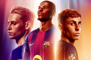 巴萨官方社媒发布了为此役制作的海报,拉什福德C位,德容、费尔明出镜。