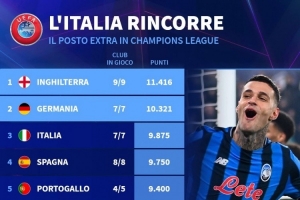 体育资讯12月10日讯 德国转会市场统计了各联赛本赛季的欧战积分,并列出榜单,英超居首,德甲、意甲、西甲排名二到四位。