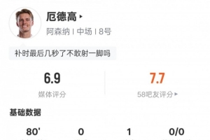 下一篇: 加布里埃尔本场数据:失误致丢球+破门,7次解围,评分8.5分