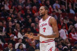 杜兰特首节打满,11投6中,三分3中1,罚球1中1砍下14分2篮板2助攻1盖帽,正负值+6。