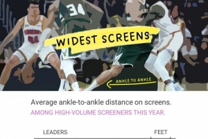 体育资讯1月13日讯 今天,数据专家Todd Whitehead统计了本赛季高频为队友设置掩护球员中的平均掩护宽度排名(掩护时左右脚踝间距),具体如下:
