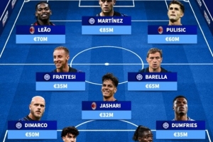米兰德比身价最高阵:国米7将米兰4将,莱奥、劳塔罗、巴雷拉在列