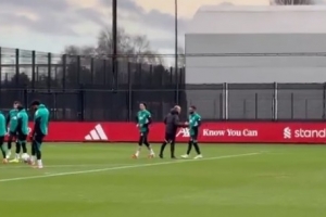 视频中可见萨拉赫走上训练场,并与工作人员击掌,加入到其他队友当中。