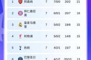 体育资讯1月22日讯 欧冠联赛阶段第7轮战罢,拜仁锁定前8确定晋级,利物浦升第4,切尔西升第8,巴萨升第9,曼城跌至第11,最新积分榜如下: