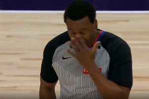 看起来就很酸爽!兰德尔干扰&球砸到裁判面部 穆迪拿到球三分!