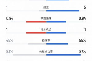 控球率——45%比55%