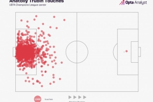 据Opta统计,特鲁宾此前欧冠比赛从未在对方半场触球,而这次头球攻门是他首次在对方半场触球,最终为本菲卡攻入关键进球。