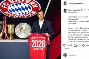 体育资讯1月30日讯 拜仁中场格雷茨卡发文确认,他将留队到本赛季结束,然后自由身离开。