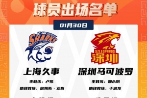体育资讯1月30日讯 今晚19:35,上海主场迎战深圳,赛前大名单出炉。