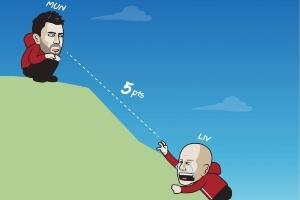 利物浦已经落后曼联5分了