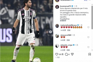 此役洛卡特利被断球,导致尤文丢掉第一球,赛后他在社交媒体上写道:“我为今晚我的失误感到非常抱歉。这场平局让我们感到遗憾,但球队展现的强大韧性仍然值得肯定。战斗到最后一刻。”