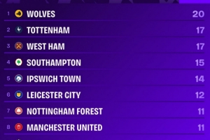 体育资讯2月11日讯 英超第26轮比赛,热刺主场1-2不敌纽卡。Squawka统计了上赛季以来球队在英超主场输球的场次,并列出主场输球最多榜单,狼队20负最多,热刺17负次席。
