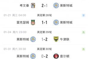 近6轮英冠,莱斯特城战绩糟糕1平5负,遭遇四连败。而也就是在本月6日,英格兰足球联赛官方宣布,莱斯特城因违反英超财务规则被扣6分。
