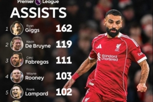 体育资讯2月12日讯 在本轮英超利物浦对桑德兰比赛中,萨拉赫送出助攻,他的助攻数也升至英超历史并列第7,具体榜单如下: