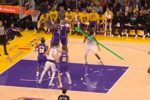 比赛的最后2分05秒,琼斯出手打铁,詹姆斯和海斯同时起跳抢篮板,海斯在空中向后摊手,将篮板让给詹姆斯,助其完成三双!