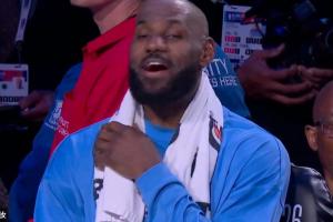 GIF-詹姆斯对镜头笑骂“法克文班(Fxxx Wemby)”