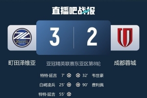 体育资讯2月17日讯 亚冠精英联赛东亚区第8轮,町田泽维亚主场3-2击败成都蓉城,暂时位居东亚区榜首。