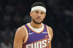 赛后采访,太阳主帅奥特对此表示:“他(布克)试着重返赛场。想要坚持比赛,他很想回来,但当他这么做时,他的移动情况并不好。他感觉还不错,但在第二段上场时间快结束时,我明显看出来不对劲了。”