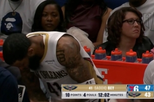 GIF-萨迪克·贝肘翻乌布雷被吹进攻犯规 两节不到4犯了