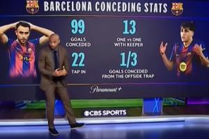 弗里克的巴萨共丢球99个,其中13次是单刀,22次是对手近距离轻松破门,1/3的丢球来自造越位陷阱。